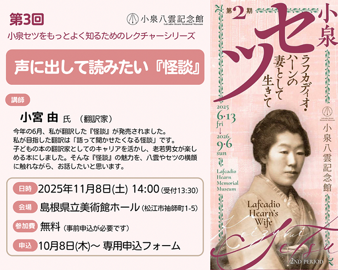 The Lafcadio Hearn Memorial Museum and his Former Residence will change its opening hours and admission fees from April 1, 2025.