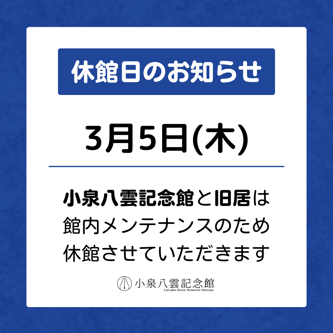 小泉八雲記念館と旧居は、館内メンテナンスのため休館させていただきます。