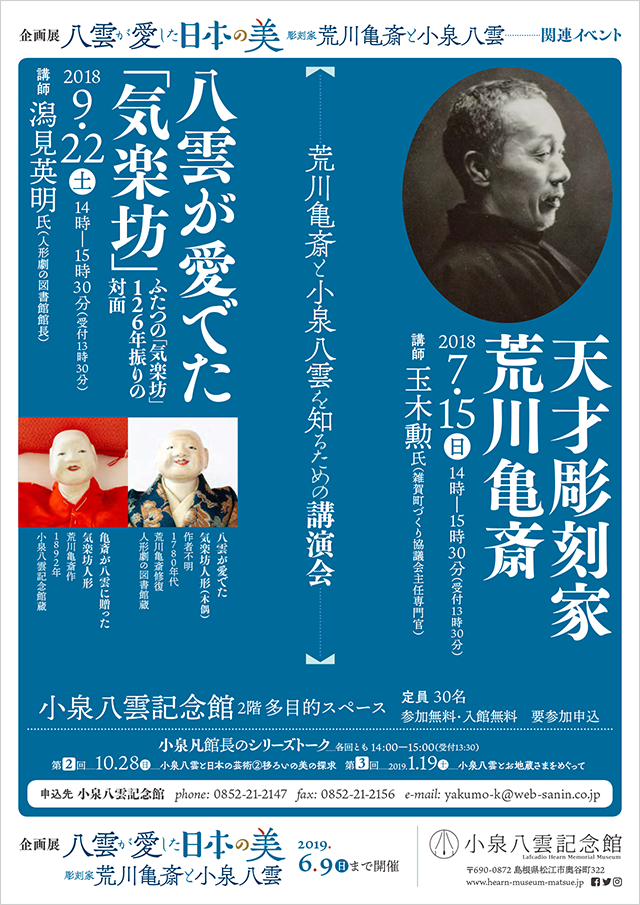 企画展「八雲が愛した日本の美:彫刻家 荒川亀斎と小泉八雲」
